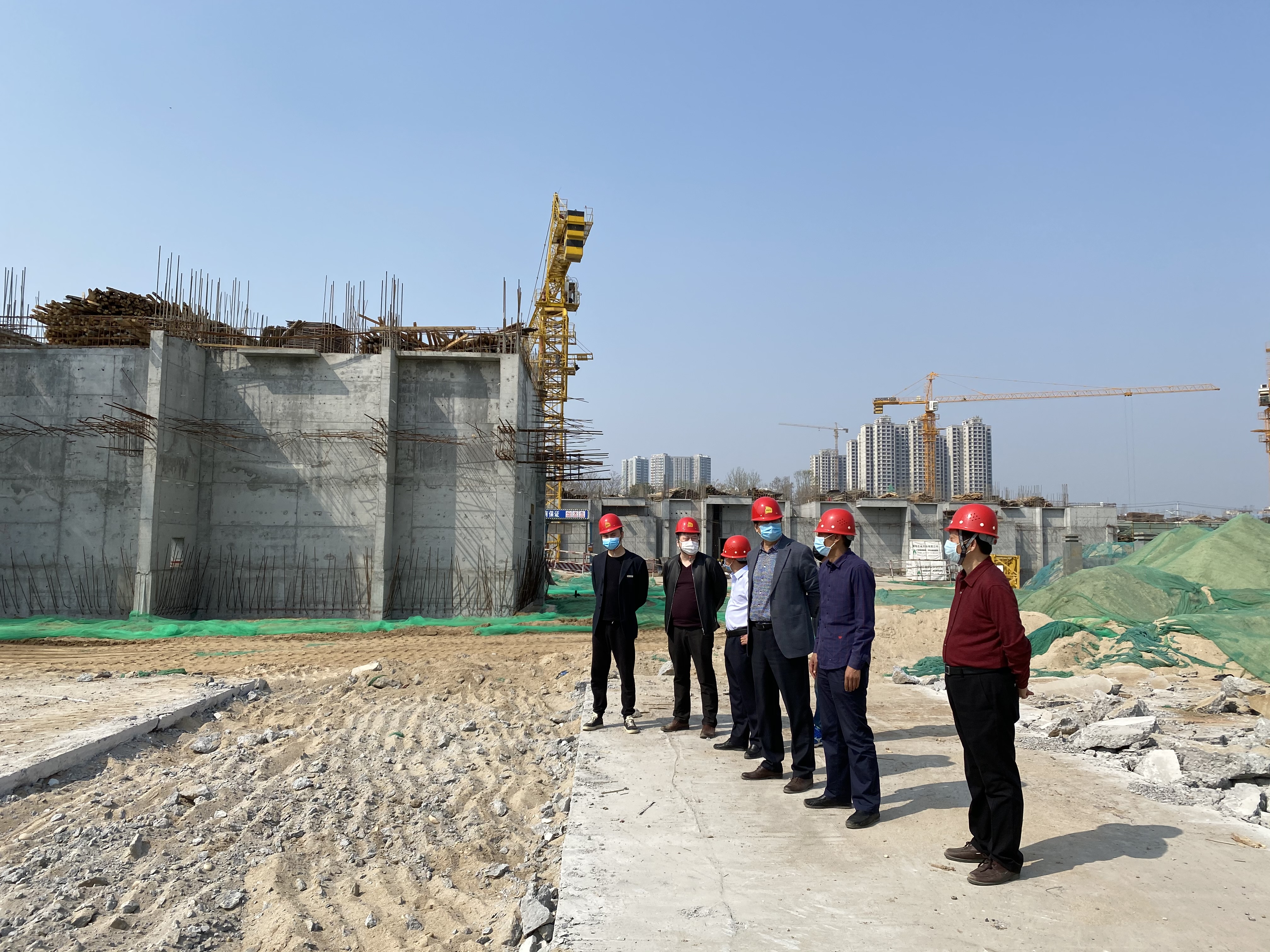 在工程公司經理張鵬、項目經理王海軍的陪同下,史濤一行通過翻查資料、現場檢查、與施工人員交談,聽取工作匯報等方式,全面深入了解了項目各項工作的進展情況,就復工復產等項目的重點工作提出了要求。