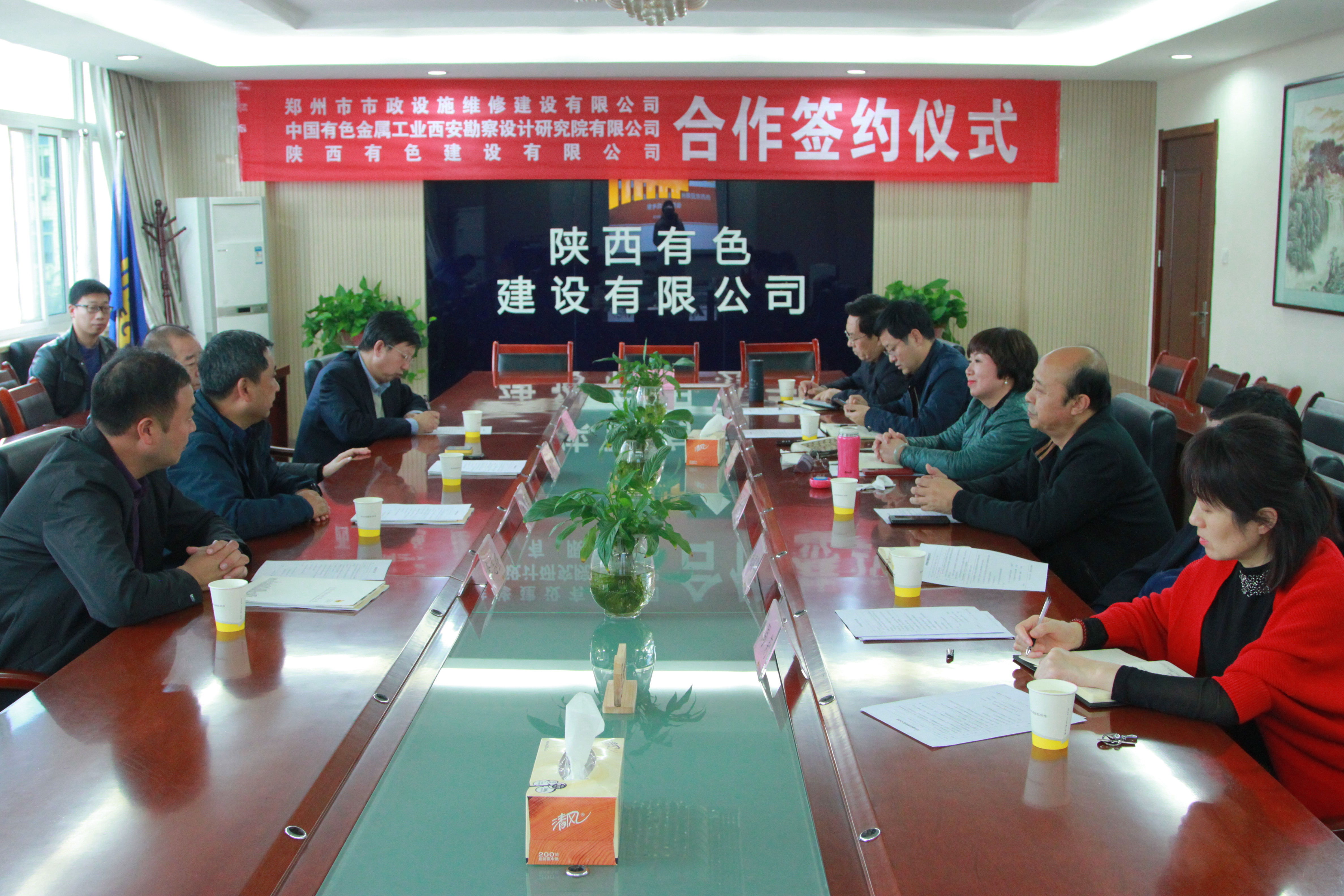 11月21日,我公司、有色西勘院有限公司與鄭州市市政設(shè)施維修建設(shè)有限公司(以下簡稱“鄭州市政公司”)在西安簽署合作協(xié)議。有色西勘院有限公司副總經(jīng)理王軍成、有色陜建黨委書記、董事長盧曉嵐和鄭州市政公司董事長兼總經(jīng)理楊智勇分別代表三方在合作協(xié)議上簽字。鄭州城基市政環(huán)保科技有限公司總經(jīng)理李志強、有色西勘院有限公司經(jīng)營部部長何軍、公司總工程師杜輝及相關(guān)職能部門負責(zé)人參加了此次合作協(xié)議簽約儀式。