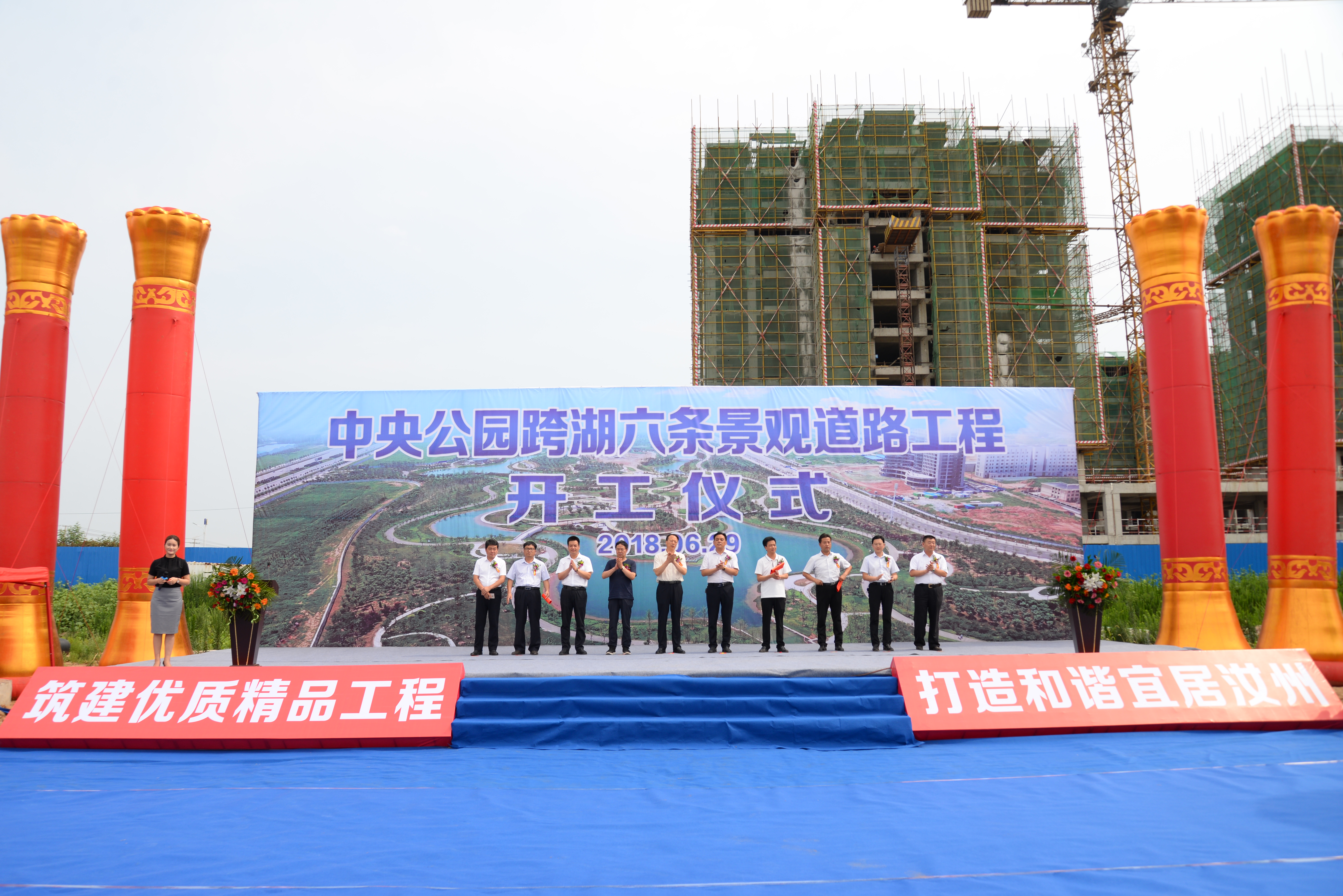 近日,由公司承建的汝州市中央公園跨湖六條景觀道路工程開工儀式順利舉行。汝州市人大常委會主任張留華、副市長范響立,住建局、工信局、電業局等相關單位負責人,有色陜建副總經理李七一參加了開工儀式,住建局黨組書記、局長裴學文主持儀式。