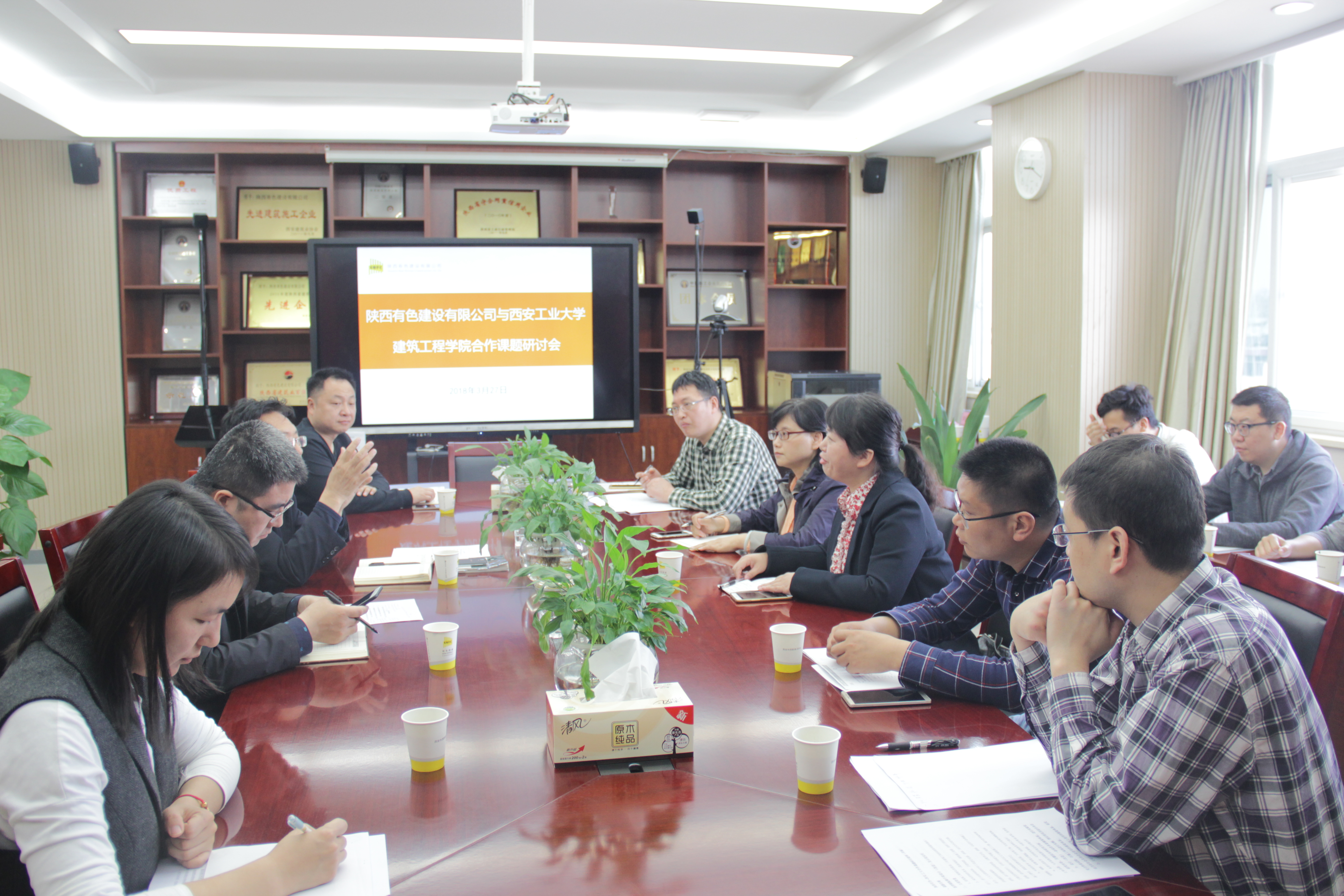 7月12日,由西安工業大學建筑工程學院教授曾凡奎、張玉為首的校方代表與公司科技質量部成員組成的有色陜建校企合作項目組,經過前期密切研討,最終確定了高層建筑外墻滲漏防治措施研究、大型筒倉漏斗施工模架支撐研發與應用、大直徑煙氣管道制作安裝施工及質量控制措施研究三項課題,并簽訂了技術協作合同,隨即展開研究工作。
